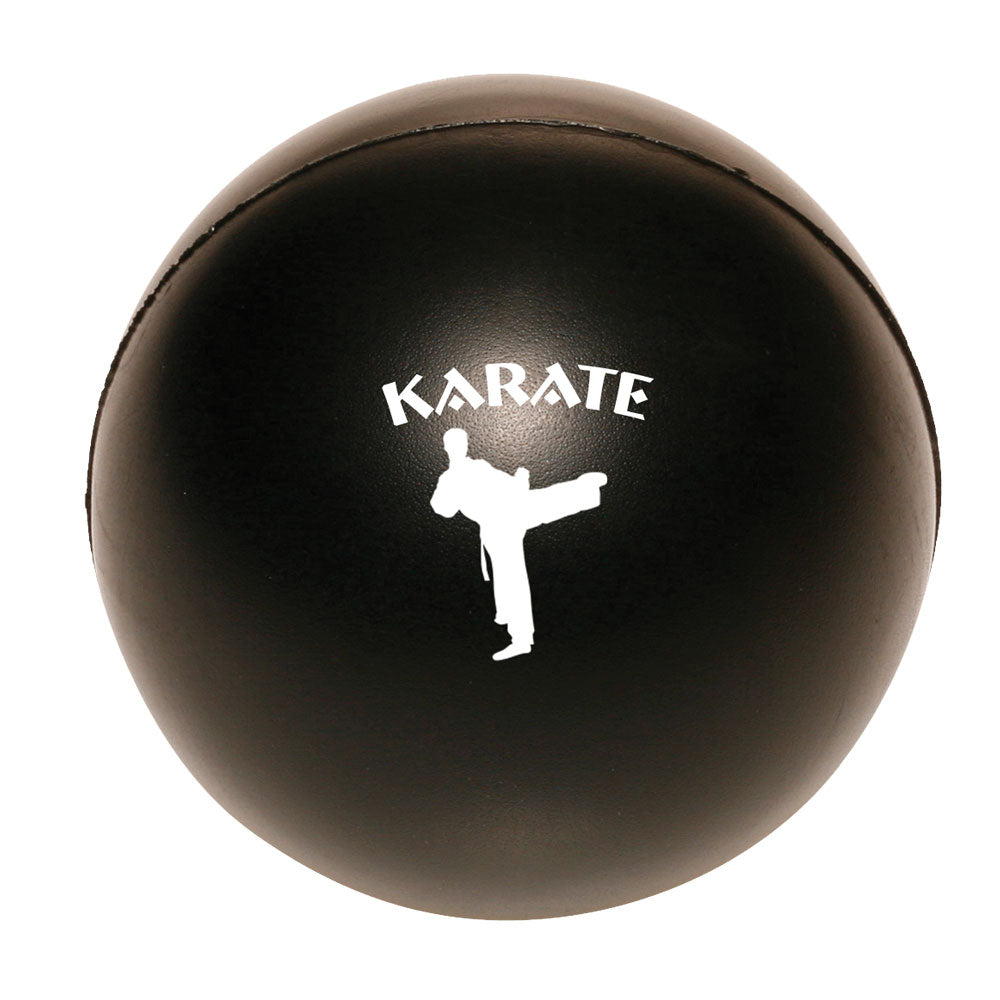 Black Stress Ball printed with kicking figure and "Karate" across the top. 2.75" diameter.