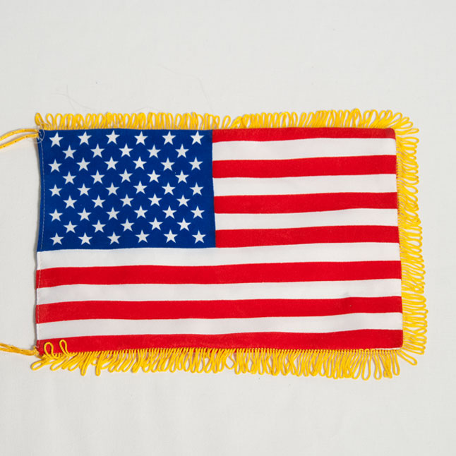 Sorry, this item is SOLD OUT. Ready to wave USA flag with a pole, double sided with tassel 9" x 12".