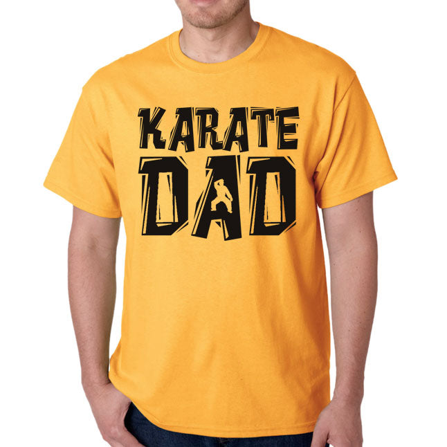 T-shirt: Karate Dad (Black Lettering). Image size: 9.5" W x 8" H. Note: The image used in the apparel section is simulated for illustration only. The proportion of the image may look slightly differ on the finished product.
