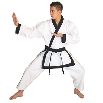 Note: Clearance item is limited to availability. It lists only the available size(s) and good only while supply lasts. Clearance price is the price of the smallest size of the item. A higher price may apply to larger size(s). Clearance item may arrive in different shades of the original color. All clearance item sales are final and non-returnable nor exchangeable. "Hayashi" Brand of heavyweight uniform. It is made of superior grade - fine combed tightly woven 100% cotton fabric. This 14 oz. top is generously cut and traditionally styled to insure a stylish and comfortable fit. The pants have black side trim with an additional double-stitched inseam, gusset and w/drawstring waistband. Belt is not included
