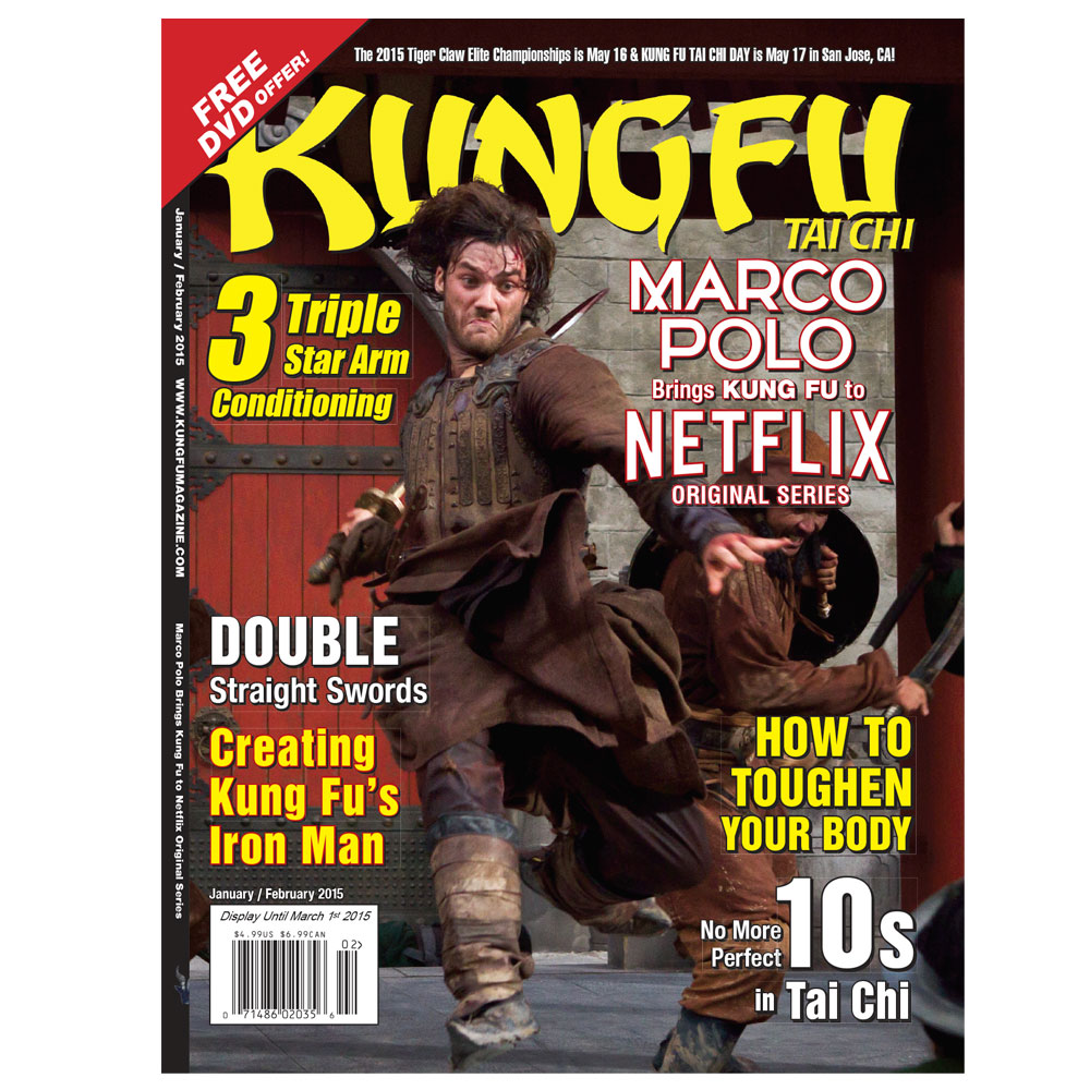 Cover Story Creating the World of the Warrior John Fusco and Marco Polo By Lori Ann White Features Hakka Paai Da Gung Creating Kung Fu's Iron Man By Williy Pang Keeping the Body Tough through Shaolin Ying Qigong By Chris Friedmanm Triple Three-Star Forearm Conditioning By Gene Ching Fighting Through the Back Tongbeiquan By Sen Gao A Master Remembers a Master Kenny Chin shares what it was like growing up with the father of American Jow Ga Kung Fu Dean Chin By Ron Wheeler The King of Fists Shaolins Cannon Hammer ByGao Xiang with Lynn Hsiao Too Close for Comfort By Arnaldo Ty Nunez Double Straight Swords Not for Women Only By Rick L. Wing No More Perfect 10s in Competitive Taijiquan By Emilio Alpanseque Featured Weapon Qing Dynasty Dao Tournaments Events - News Clawmarks By Jonny Oh Tat Wong Kung Fu Academy Celebrates 30 Years of Excellence By Luke Neher The Unveiling of the Huo Yuanjia Statue in Shanghai By George Tsimpinoudakis with Hanna Riviera Nanjing Sports Lab - Wushus Bold Olympic Experiment By Martha Burr Nanjing 2014 Youth Wushu Tournament By Martha Burr James Wing Woo 1922-2014 By Paula Batson 2014 Wushu Events in Connecticut By Anthony Roberts